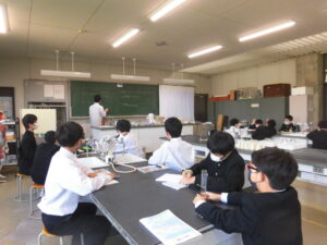 本日5校時、中1理科の授業中。理科の担当は担任の阿部先生です。 今日は“密度の求め方”を学習していました。いろいろな実験を通し、探究力を深めていってほしいと思います。