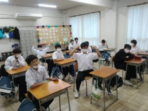 後期になったので、中1、約束どおり、席替えをしました。 若干表情に違いがあるでしょうか・・教壇に近い席はちょっと不人気でした・・・ どの座席でも、新たな気持ちで!仲良くがんばりましょう。