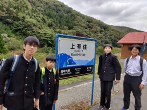 こちらの班は釜石線の看板に着目しました。今回は三陸エリアの学習なので、釜石駅から住田町の上有住駅まで乗車しました。 釜石線の看板にはエスペラント語で愛称がついています。上有住駅の愛称は“カヴェルノ”、「洞窟」という意味が […]